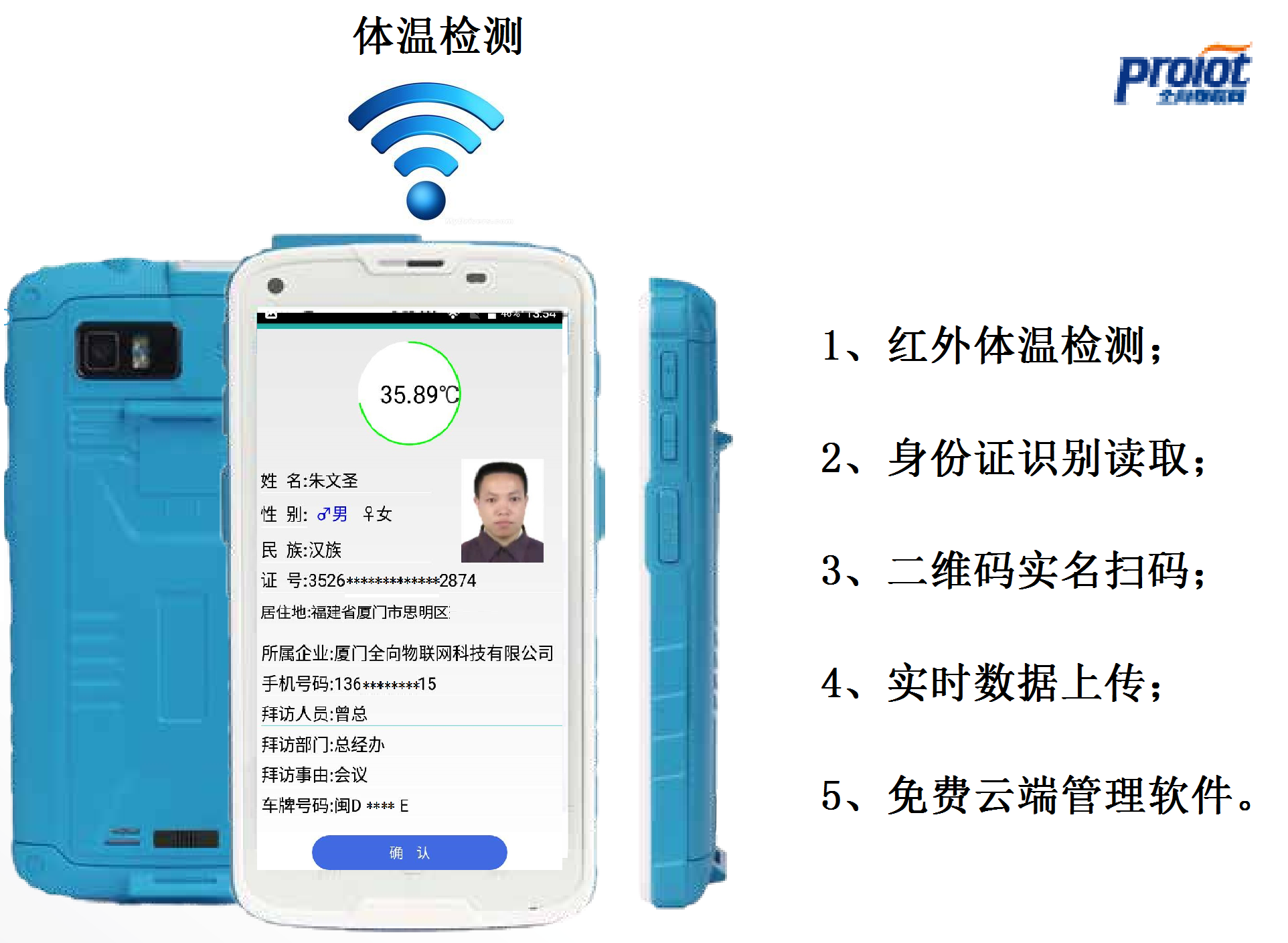 为更便捷的进行体温测量实名登记,我司开发了专门用于测温的PDA,具有以下功能: